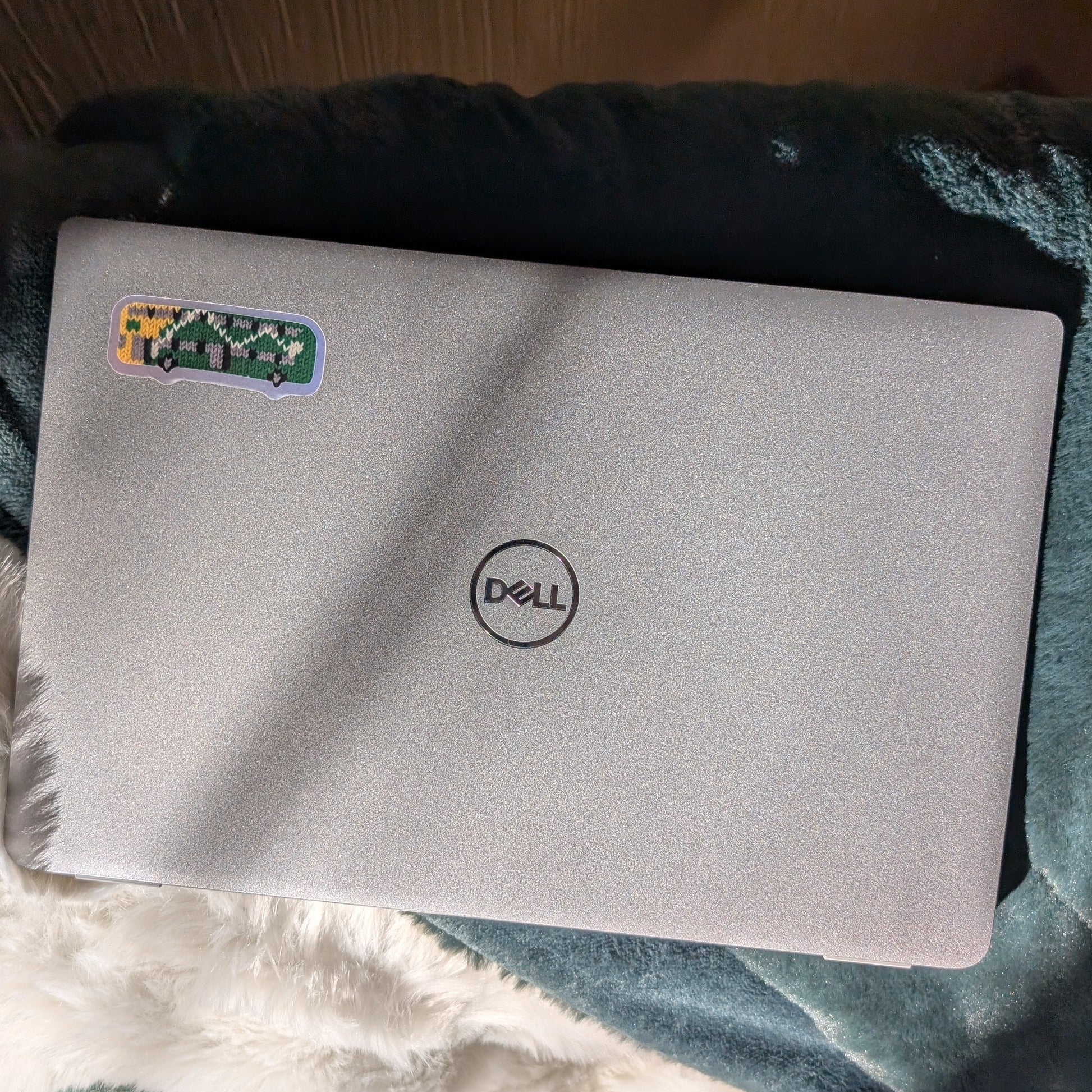 6.5x3.5cm holographic sticker of knitted green bus